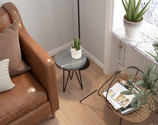 O produto de Vicostone Grande com as veias cinzas escuros intercalados e contraste totalmente com o fundo branco de mármore captura os galhos grandes, criando destaque artístico na sua construção interior.
