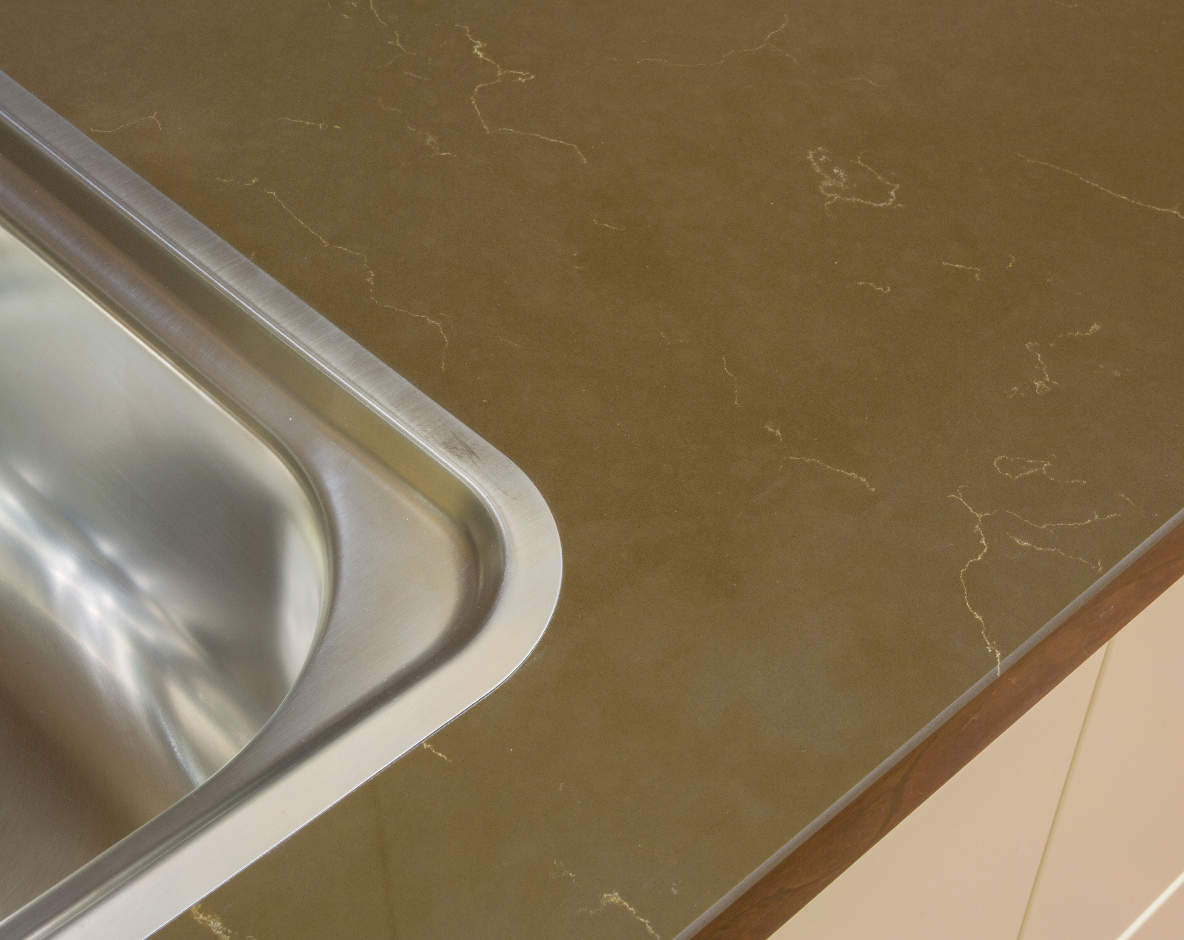Vicostone Empire is inspired by natural marble with small, soft white veins appearing on the warm dark brown surface.