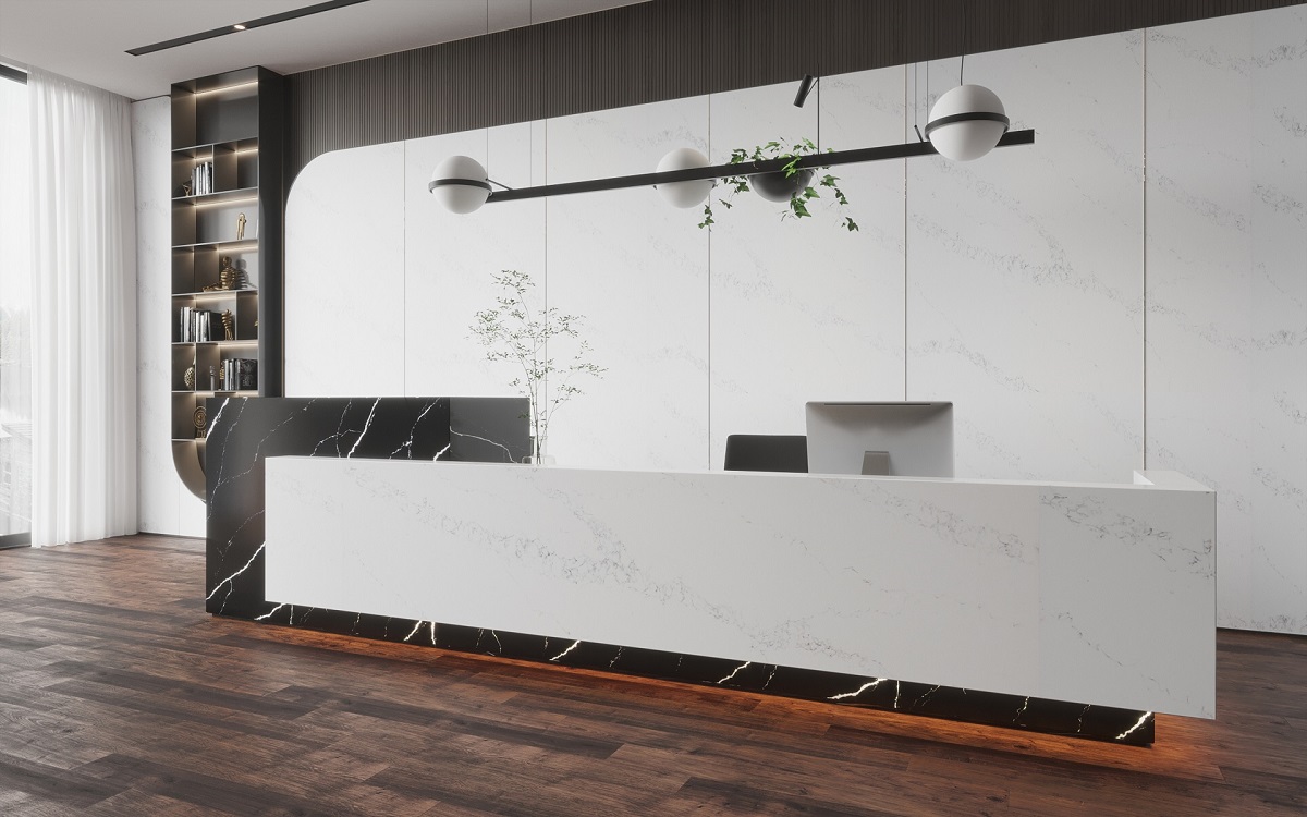 Inspired by natural Panda White marble and Yin Yang theory of the East, Vicostone's Panda White features bold black veins stretching across an elegant white marble-like background creating a stunning high contrast for a daring and elevated look. Inside each black vein are soft fused white threads like the intricate balance between yin and yang.