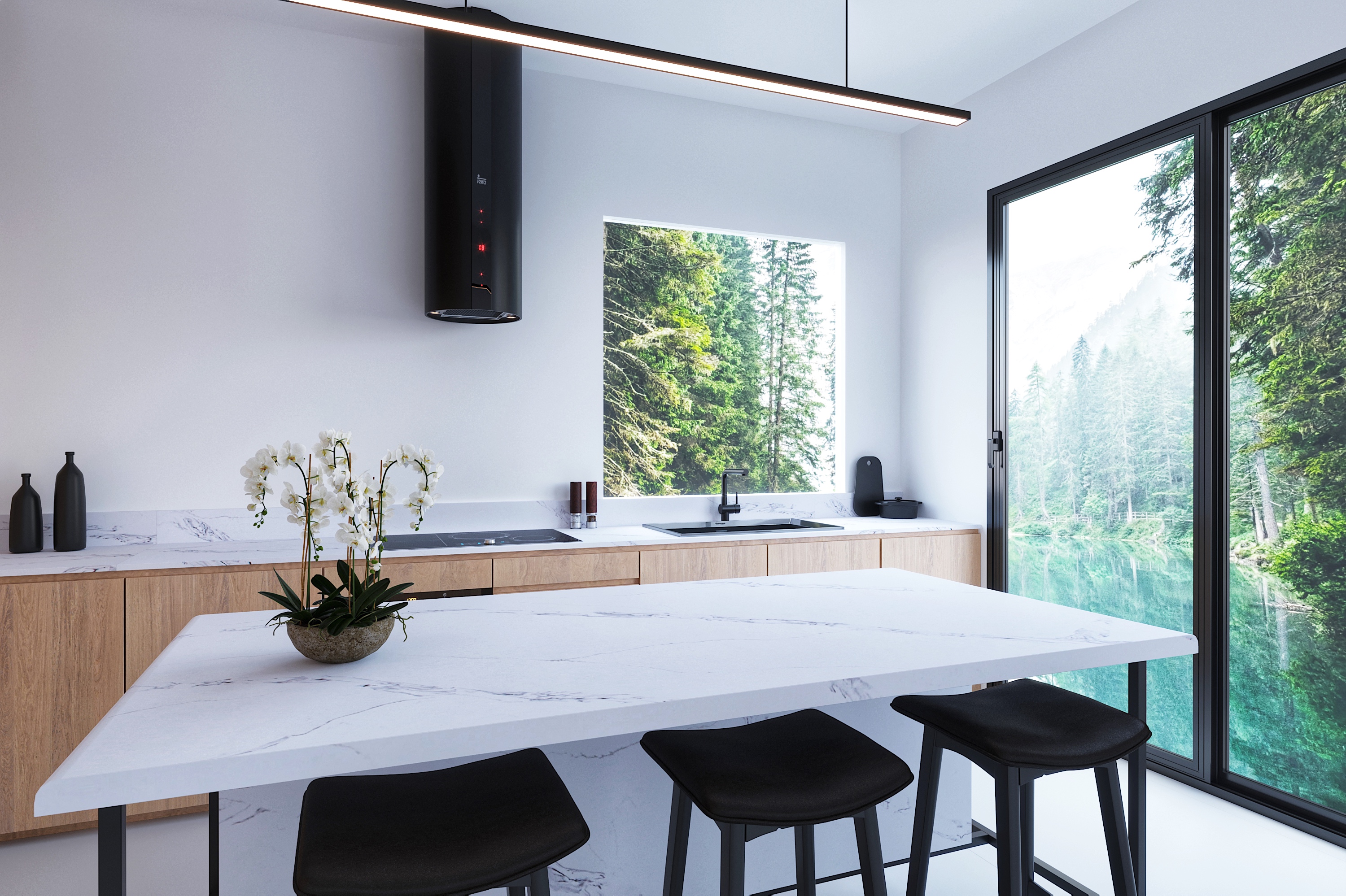 Inspired by natural Panda White marble and Yin Yang theory of the East, Vicostone's Panda White features bold black veins stretching across an elegant white marble-like background creating a stunning high contrast for a daring and elevated look. Inside each black vein are soft fused white threads like the intricate balance between yin and yang.