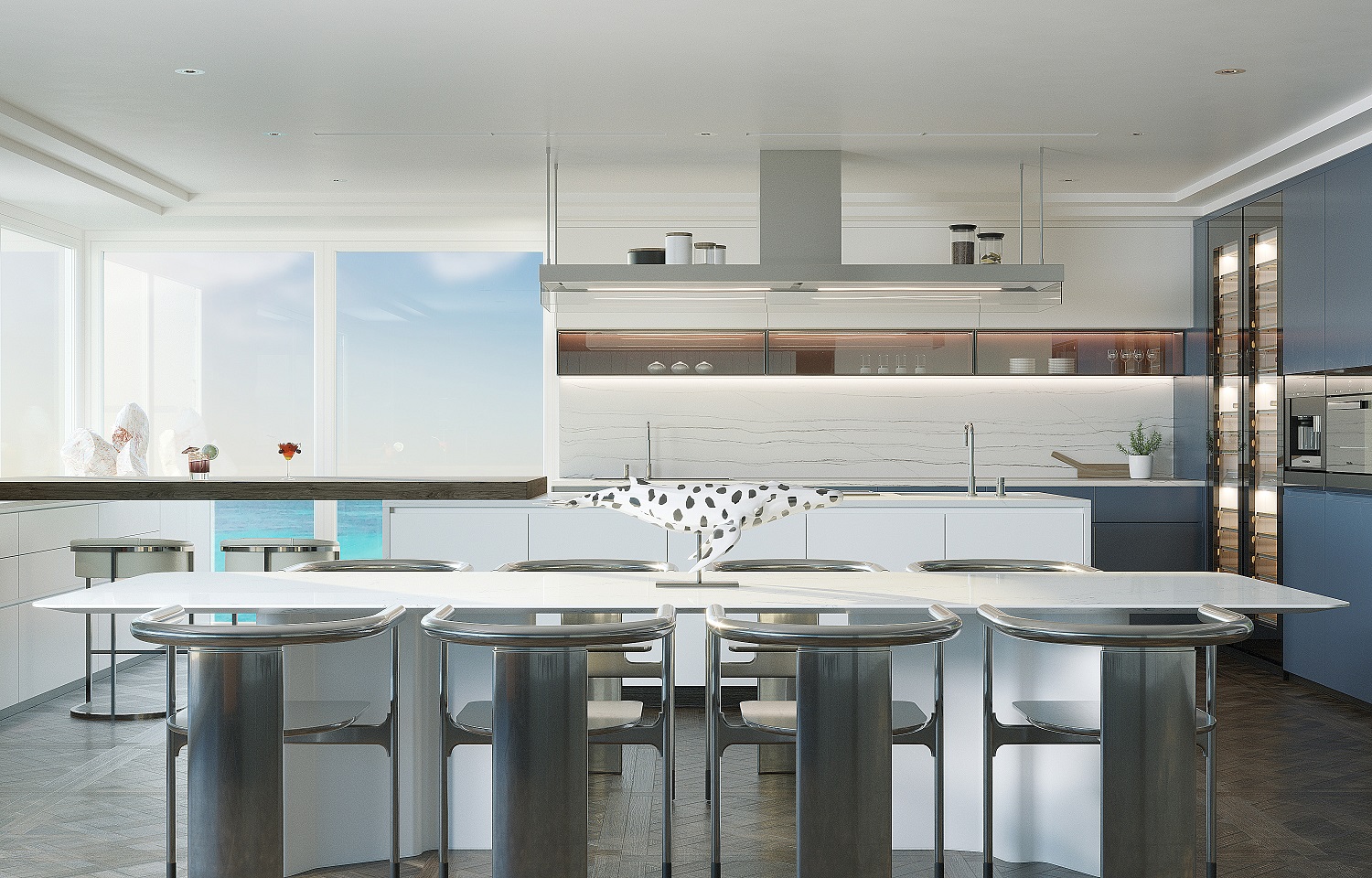 Inspired by natural stone Matarazzo and cliff by the sea, a unique combination of bold multi-colored veins transitioning from blue white to dark gray over a layered background. Its multitude of color create contrast while still maintaining the beautiful depth of quartzite with smooth layers.