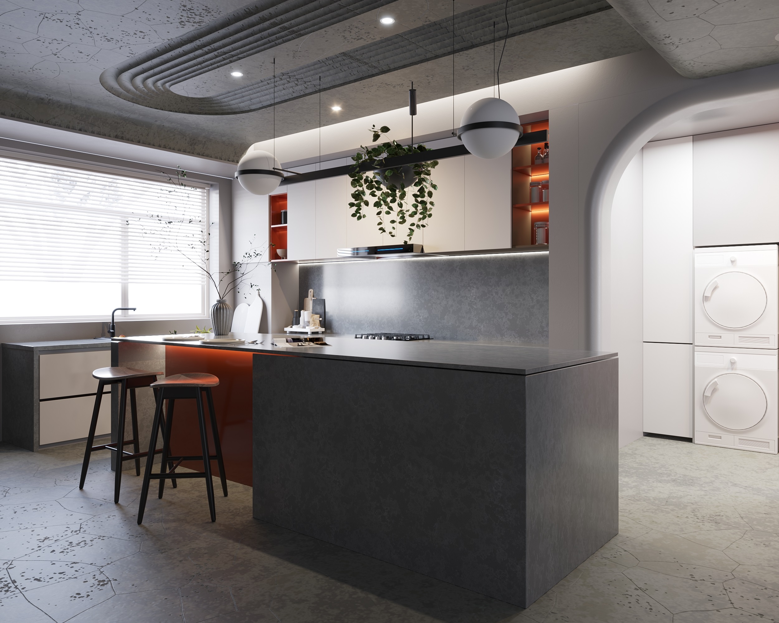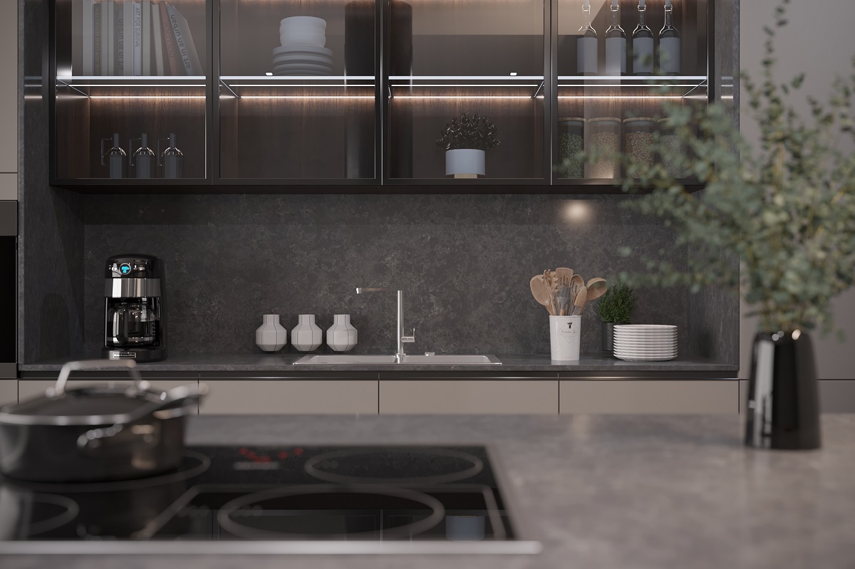 Inspired by the concrete looking in modern designs or bold urban-industrial style, Vicostone Tartufo is even more unique with veins on the dark gray background.
