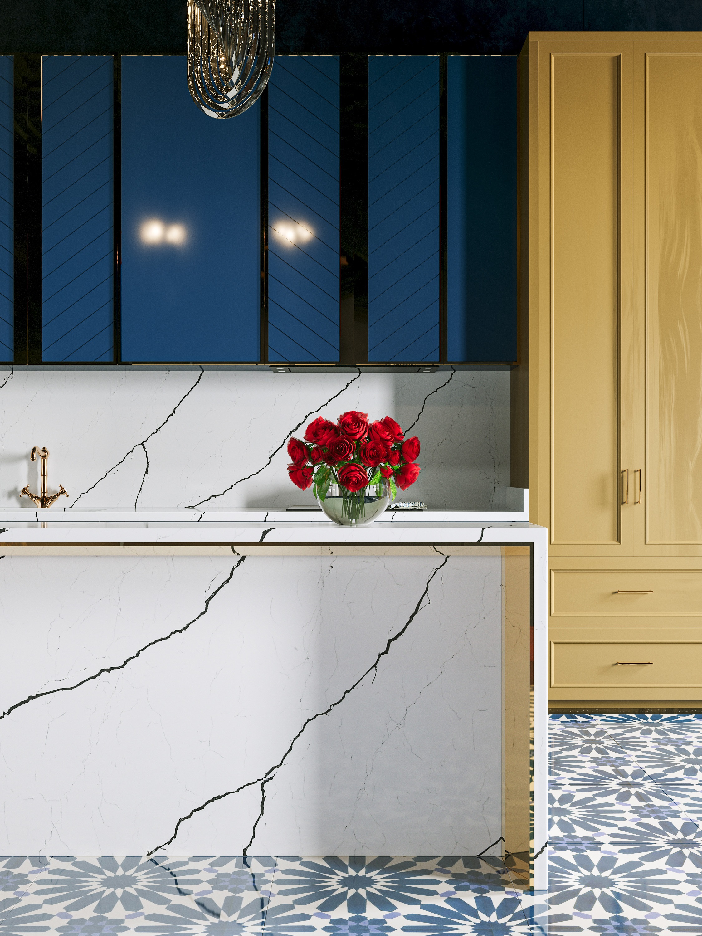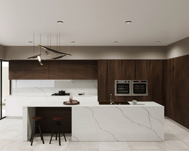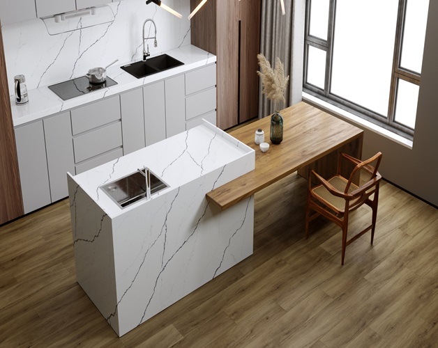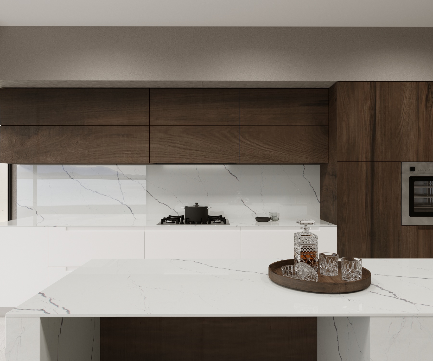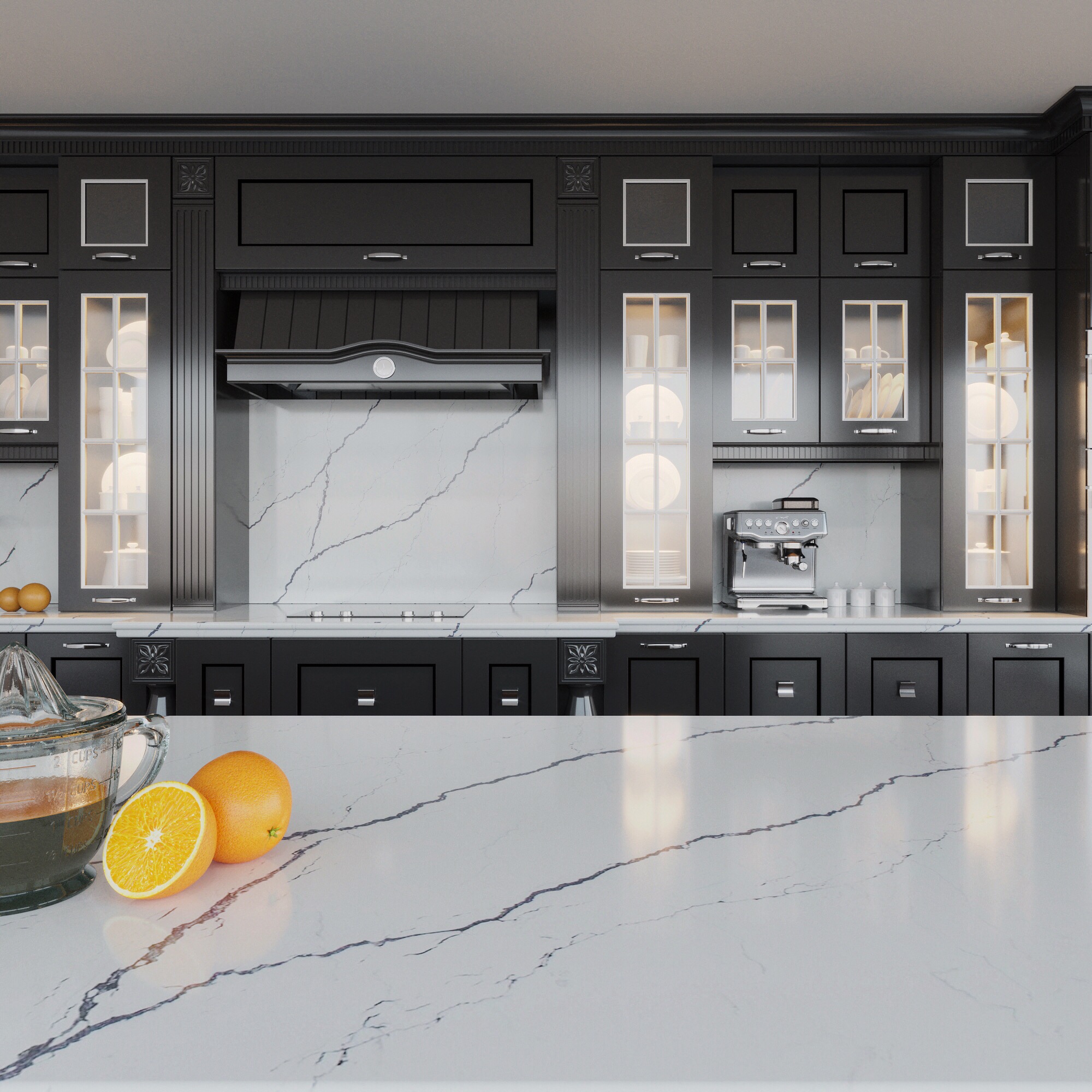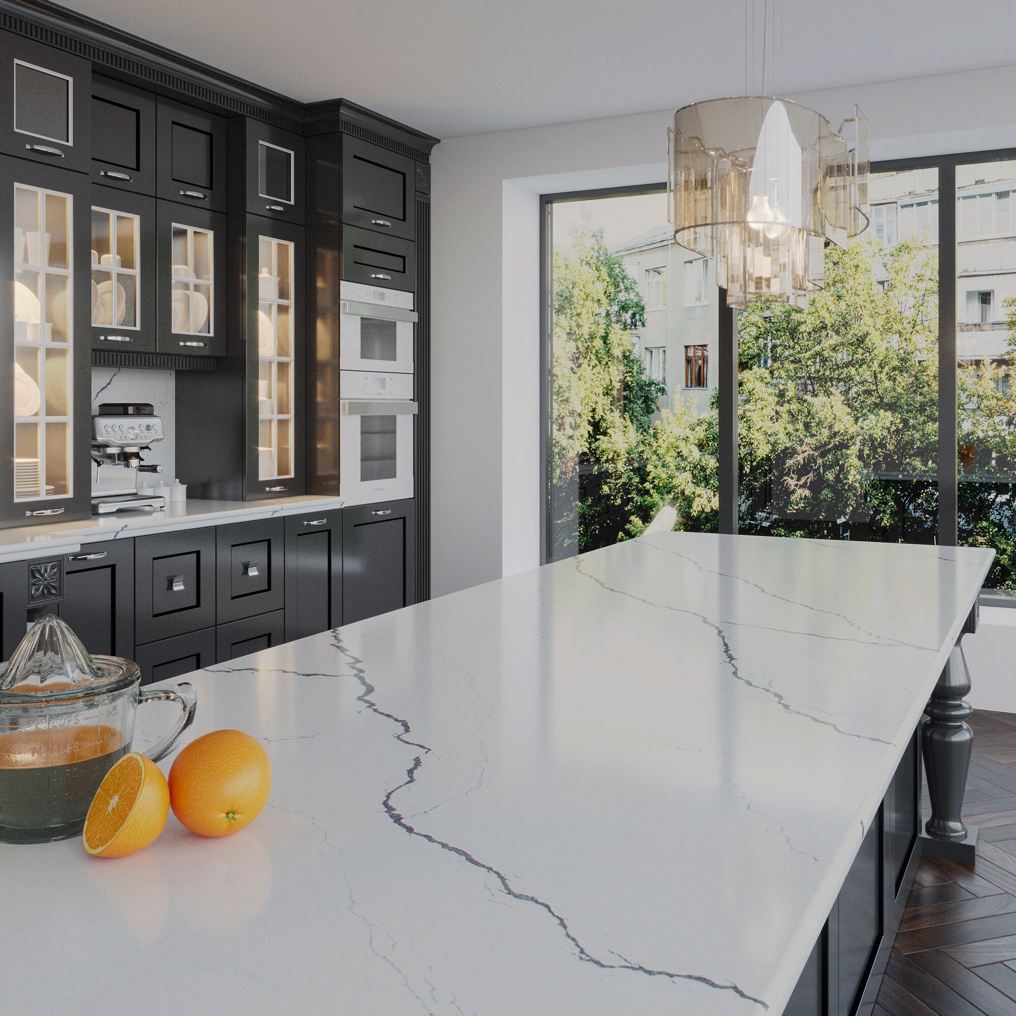 VICOSTONE Panda White™ BQ8928 nổi bật với những đường vân đen đậm mạnh mẽ trải dài trên nền đá tựa cẩm thạch trắng tao nhã, tái hiện hình ảnh sông Ngân Hà vắt ngang qua bầu trời khi nhìn từ Trái đất. Sản phẩm mang đến cảm giác về dòng năng lượng bền vững, vĩnh cửu đang cuộn trào không ngừng.