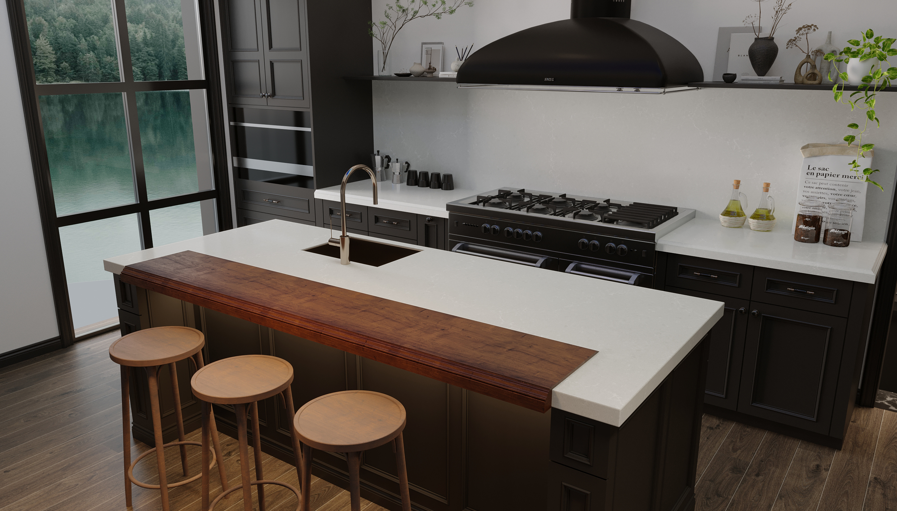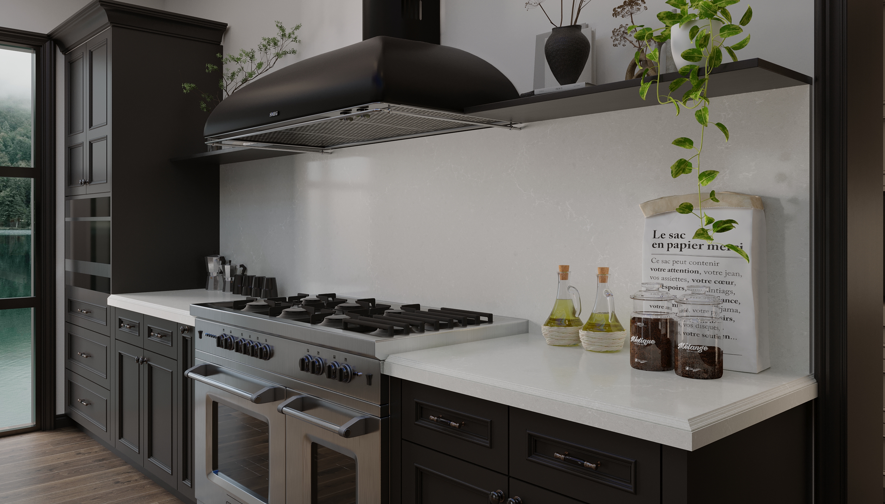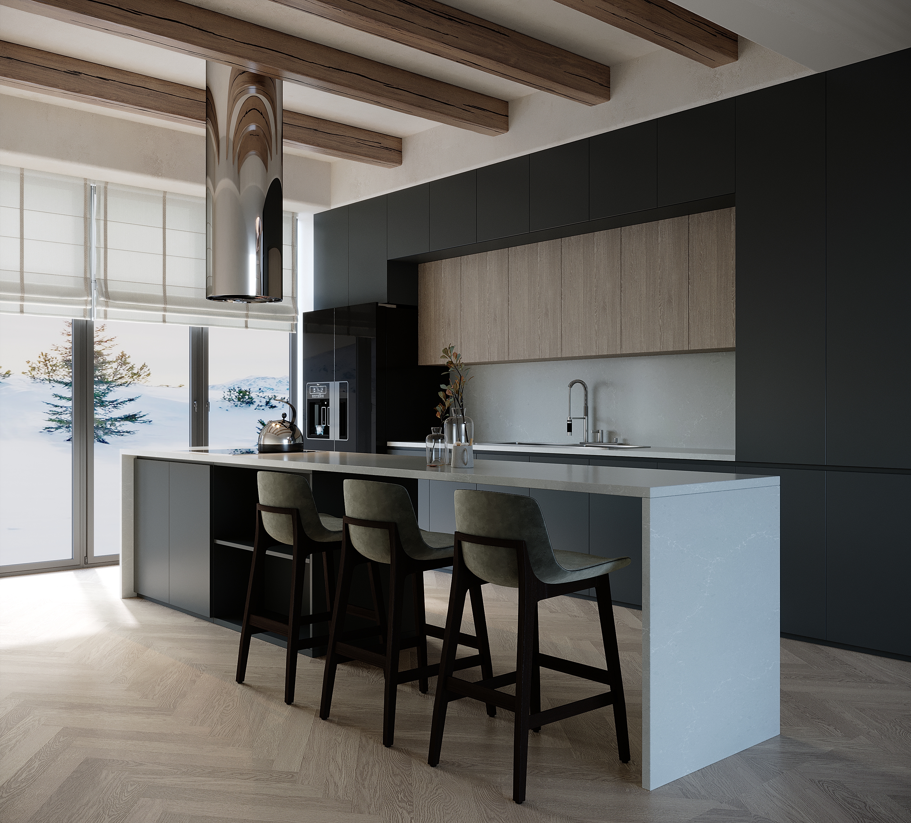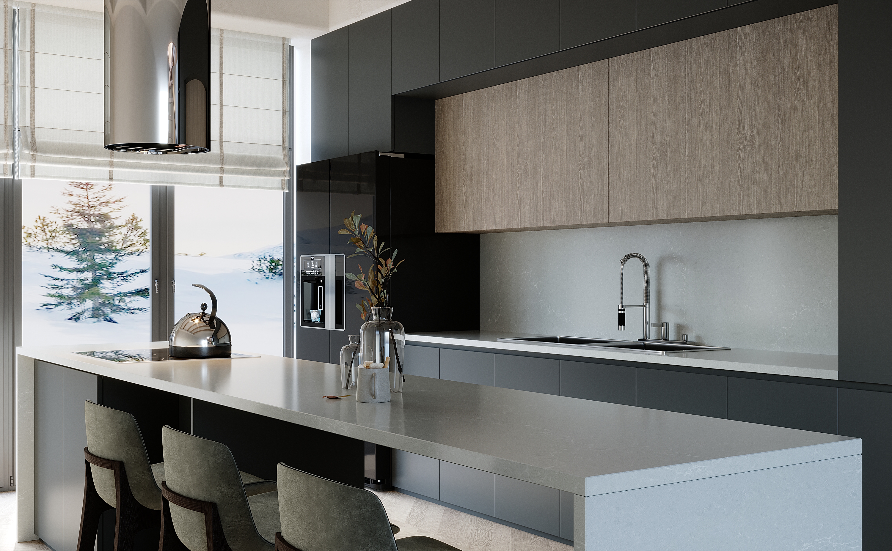 VICOSTONE Misterio Avo đan xen những lớp vân màu trắng trải rộng trên nền đá tựa cẩm thạch Avorio tinh tế, mô phỏng vẻ đẹp độc đáo bề mặt các hành tinh.