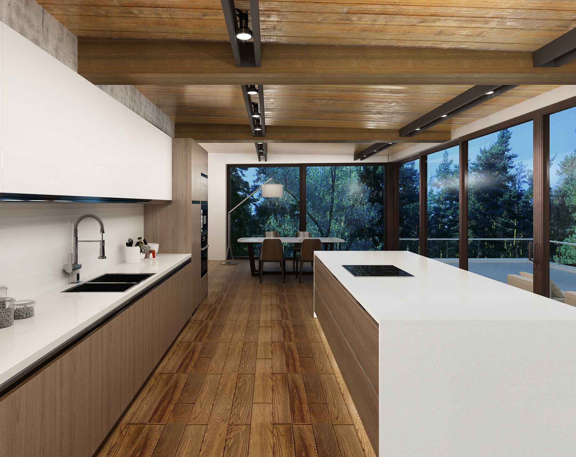 Dòng sản phẩm sử dụng các hạt thạch anh kích thước lớn, màu trong suốt như gương kính. Các hạt thạch anh này đem lại hiệu ứng chiều sâu trong suốt cho sản phẩm, tạo nên sự độc đáo khi kết hợp với các chi tiết ánh sáng khác nhau trong không gian nội thất.