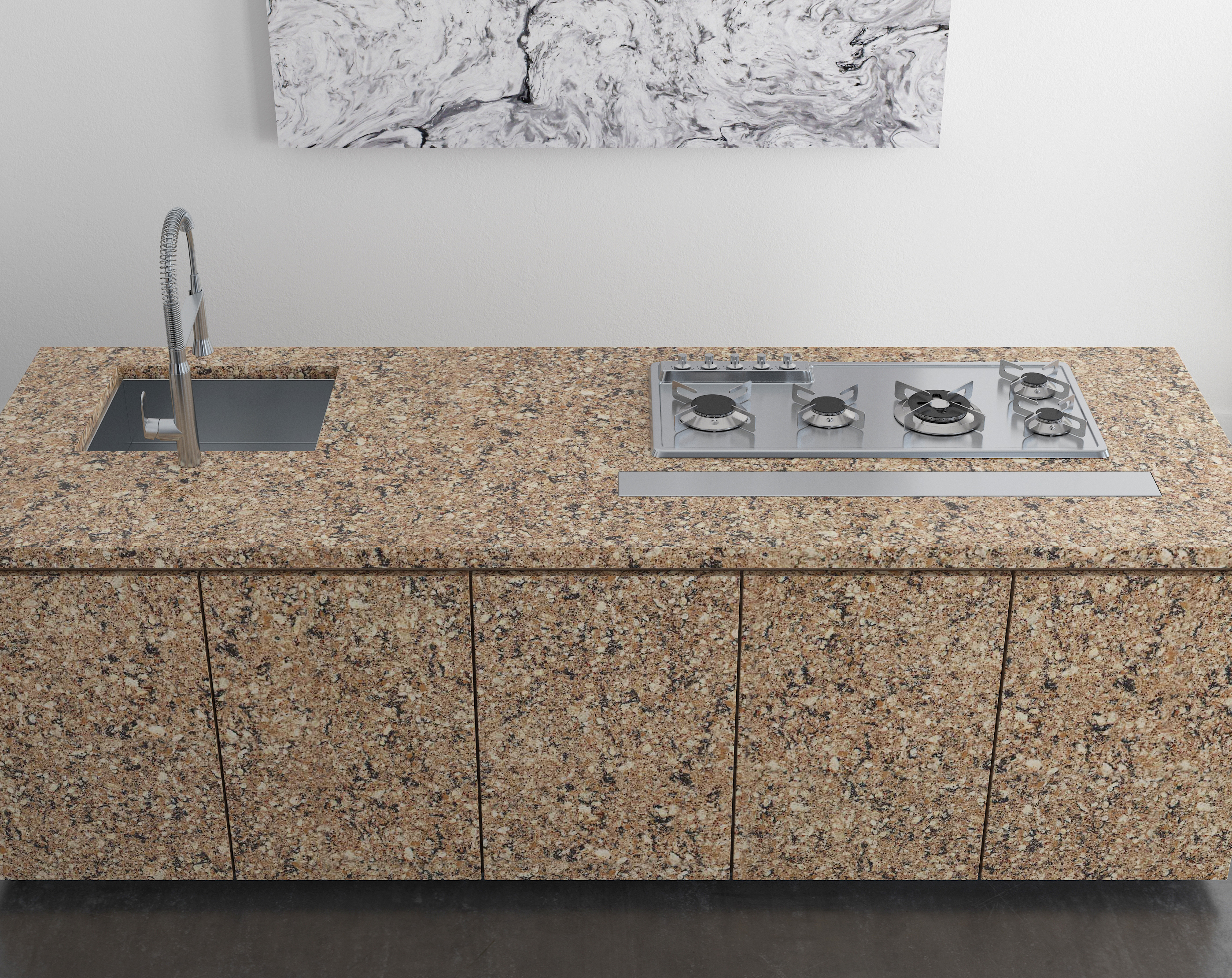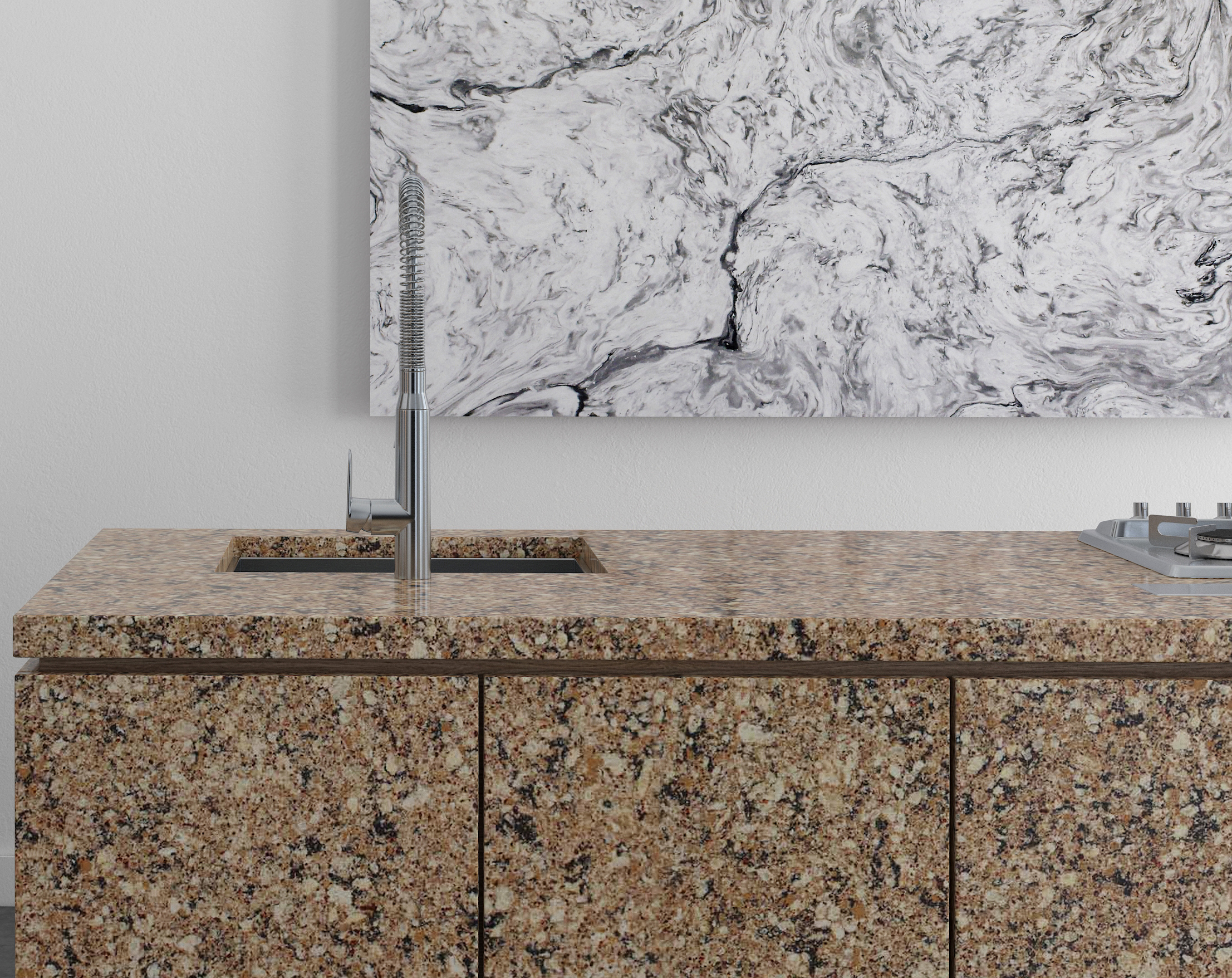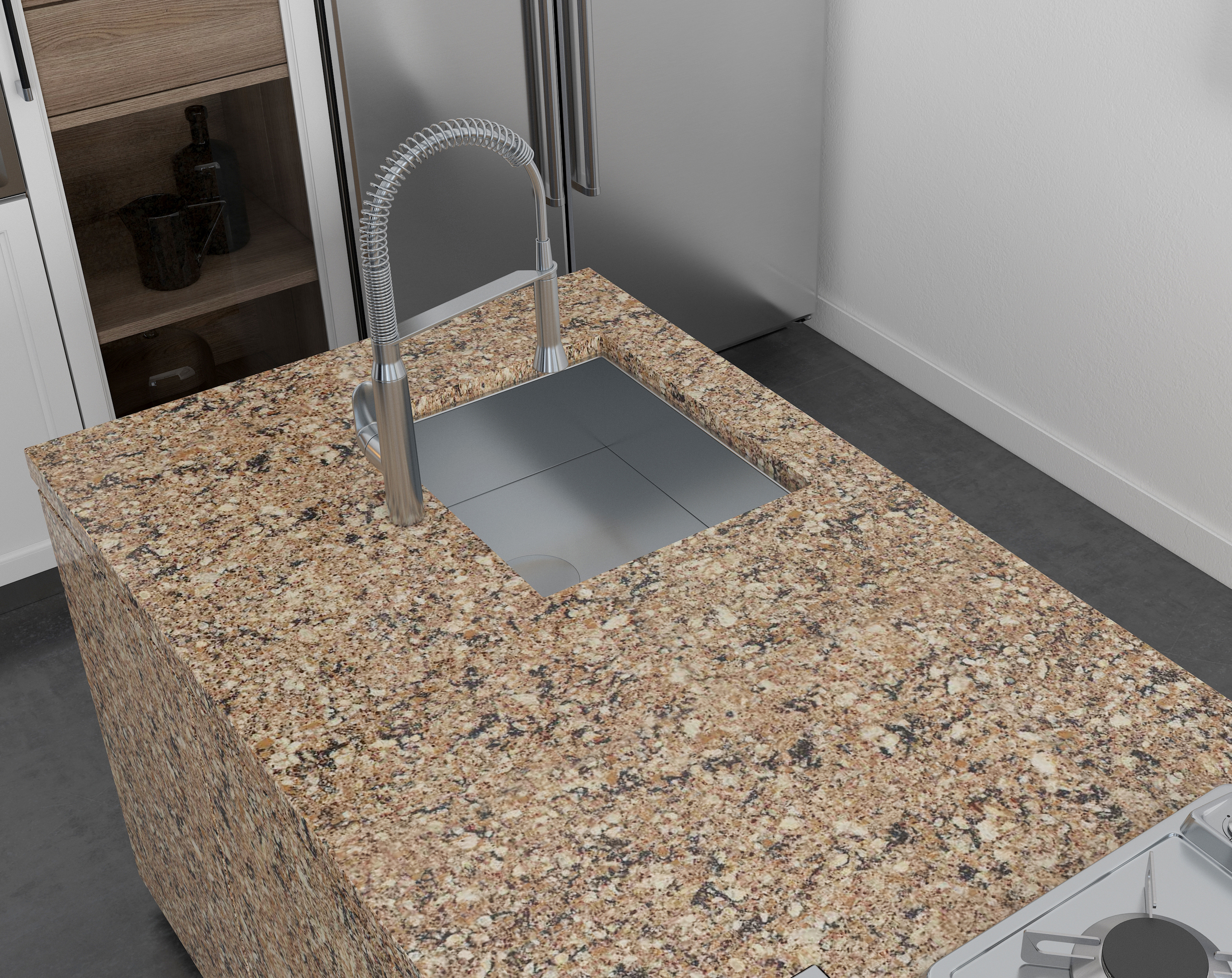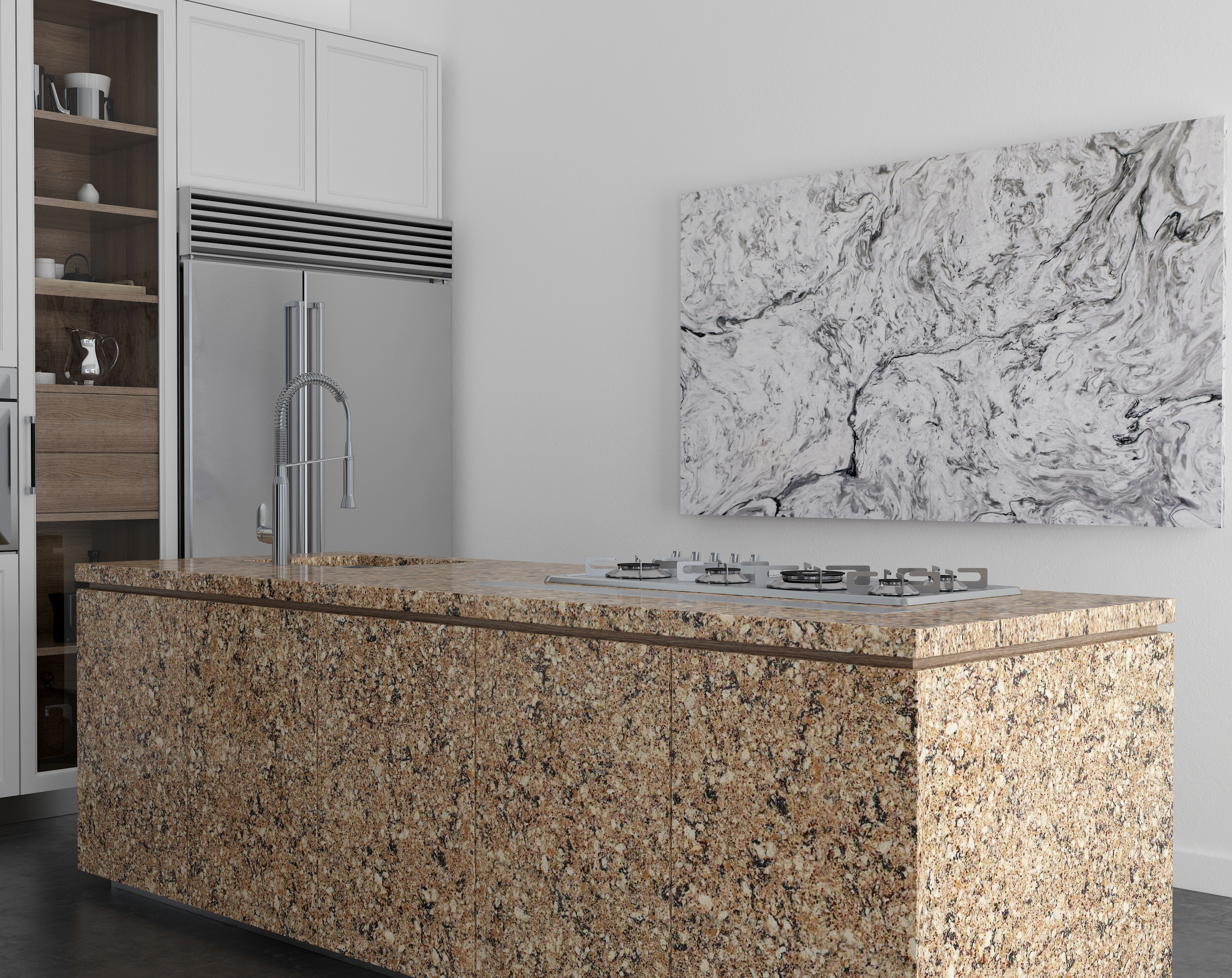Dòng sản phẩm mô phỏng những mảng hạt lớn của đá granite tự nhiên, màu sắc thiên về tone màu vàng ấm.